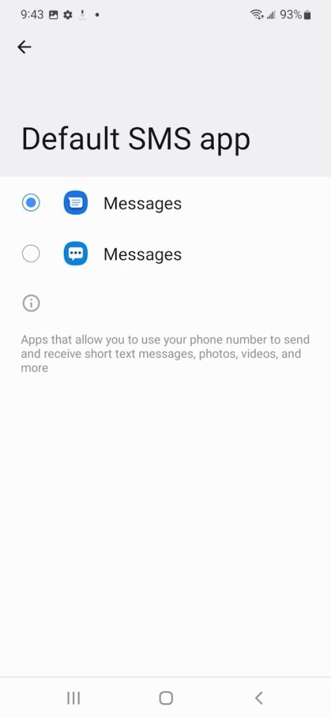 Samsung Messages is still installed on the phone by default, but users have to actively choose to switch to that app.