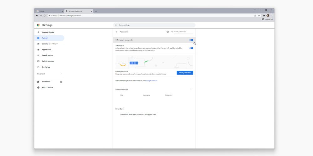 When this option is enabled, whenever you enter credentials Chrome doesn’t recognize, it will offer to save the password and username in Password Manager, where it’s easy to access.