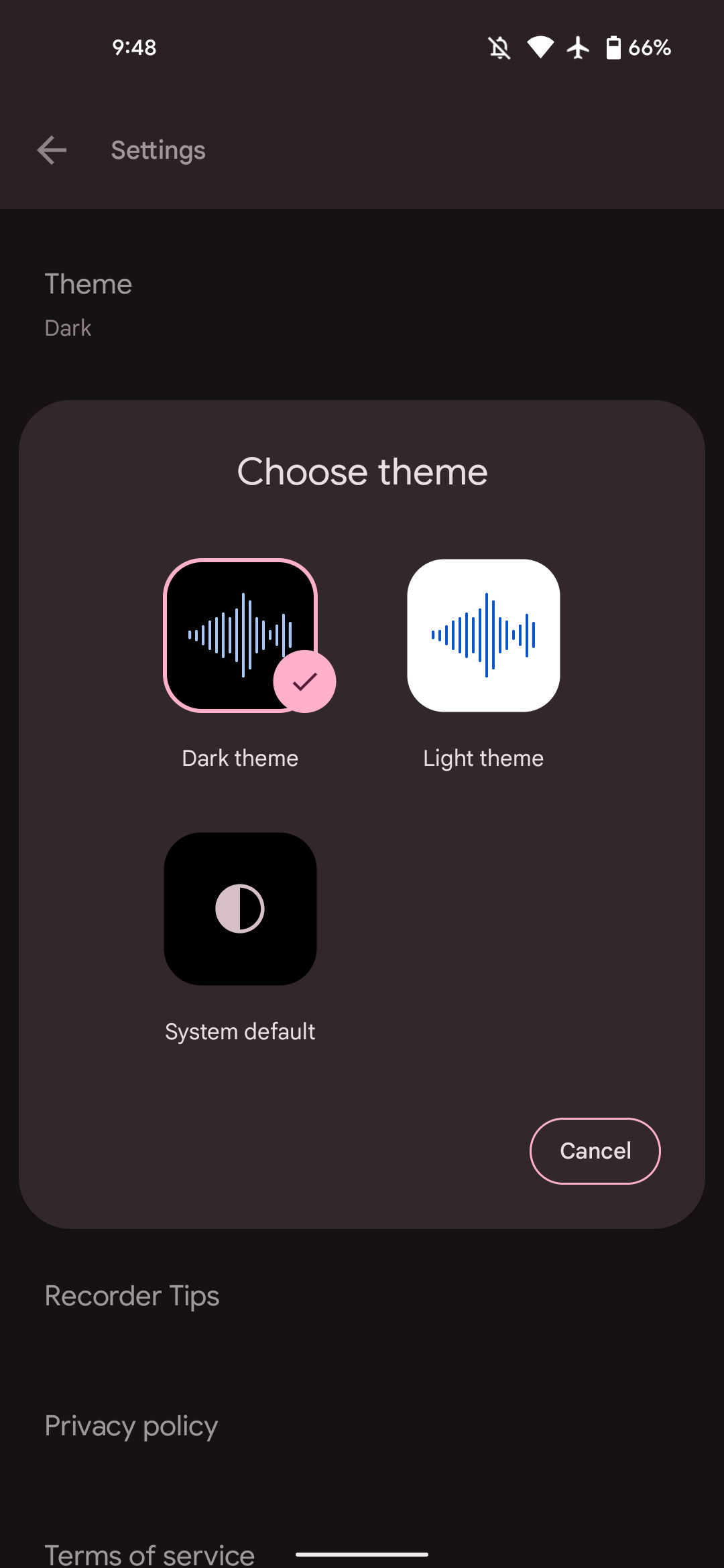 Under Theme in Settings, you can once again choose “System default” in addition to the manual Dark or Light backgrounds.