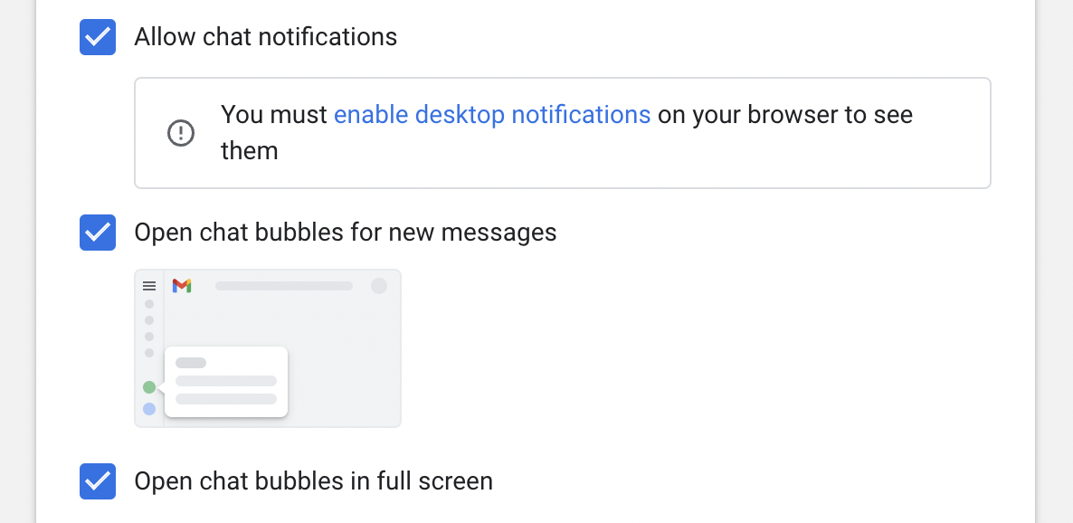 Update 3/2: By default, chat heads that appear at the bottom of the left rail opens in full screen mode. Fortunately, you’re able to change that behavior from Settings > Chat and Meet > Manage chat settings.