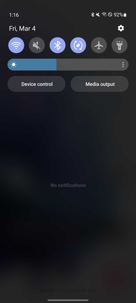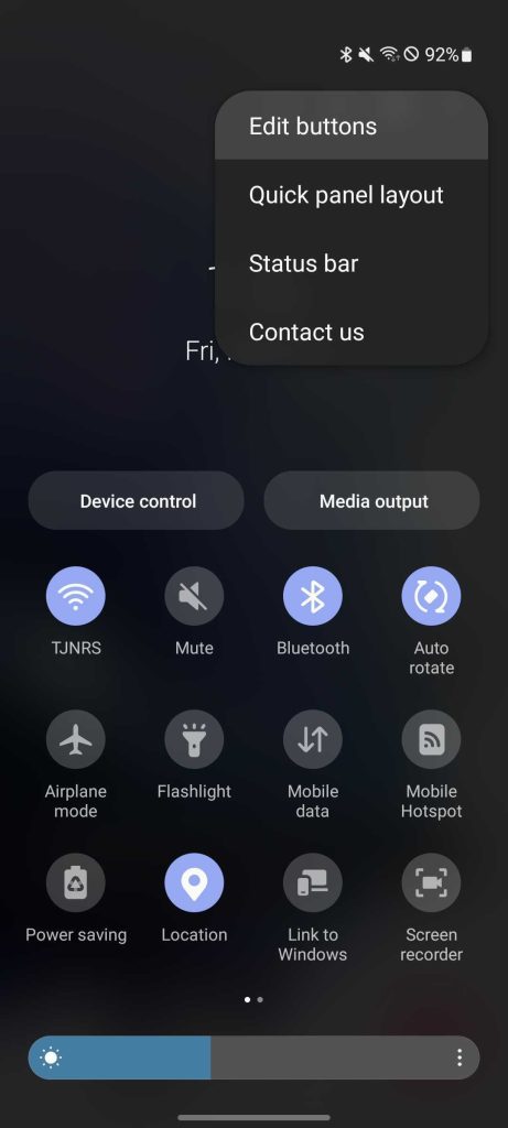 Other features you can disable/enable on the Quick Panel are the brightness slider, Device control, and Media output buttons. These can be turned off to clean up the Quick Panel, or they can be adjusted to fit your needs on a Samsung device. Here’s how to customize those buttons: