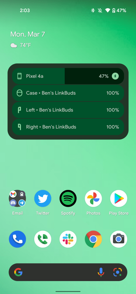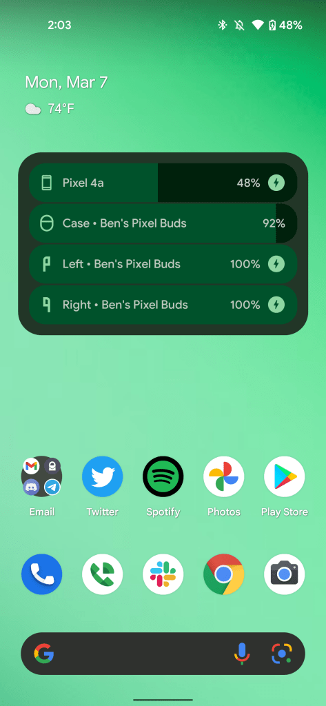 One of the minor, but exciting little tweaks in the latest Feature Drop for Pixel phones is the addition of a new battery monitor widget for the homescreen. With a glance, you can easily see the battery levels of your phone and connected devices, with Google’s promoted example, of course, being Pixel Buds.