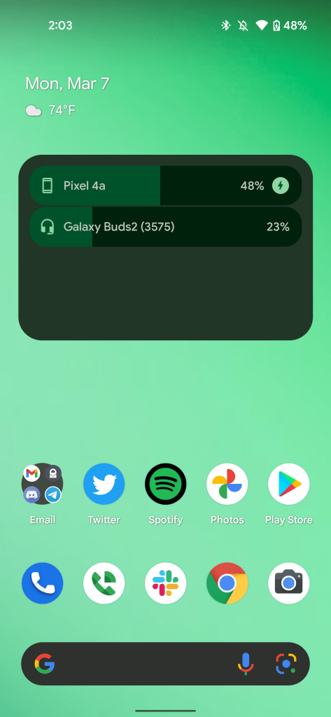 One of the minor, but exciting little tweaks in the latest Feature Drop for Pixel phones is the addition of a new battery monitor widget for the homescreen. With a glance, you can easily see the battery levels of your phone and connected devices, with Google’s promoted example, of course, being Pixel Buds.