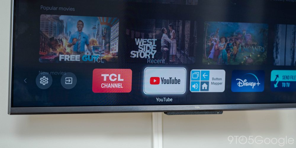 From there, you’ll see three buttons with non-descript icons – the first is a keyboard button, which for the life of me I couldn’t actually get to do anything. There’s a “stack” icon next, which is supposed to represent recent apps. This one is easy to learn, but the icon is not intuitive at all, as that same icon isn’t seen anywhere in TCL’s software. Finally, there’s a button with three squares on it, which is meant for accessing “TCL Home,” a previously-mentioned menu with access to some utility apps. This is, again, unintuitive, but the same icon can at least be seen in TCL’s software. There are finally four content shortcuts below, for Netflix, YouTube, Prime Video, and TCL Channel. None of these buttons are re-mappable by default.