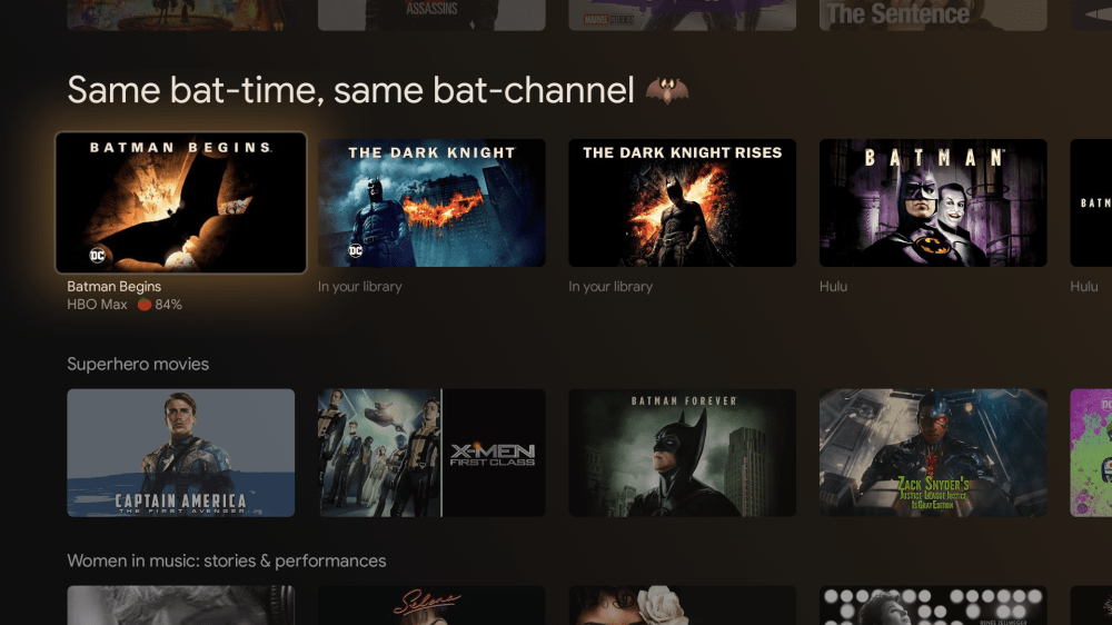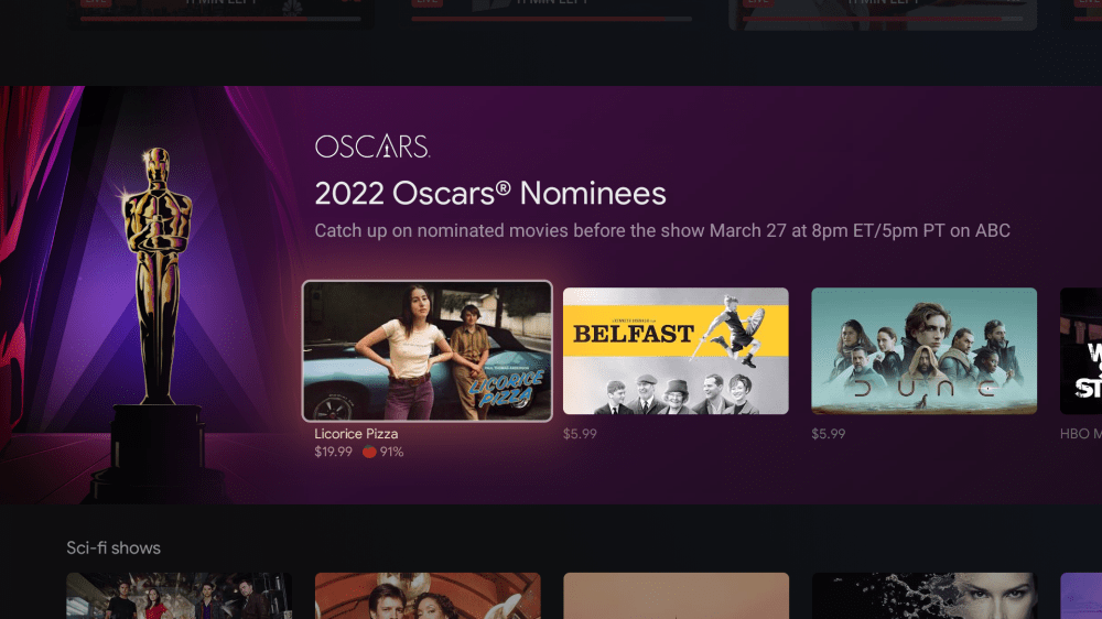 On Google TV’s homescreen this week, the platform is highlighting Oscar-nominated films in a prominent block, and also Batman and superhero films in rows as The Batman hits theaters.
