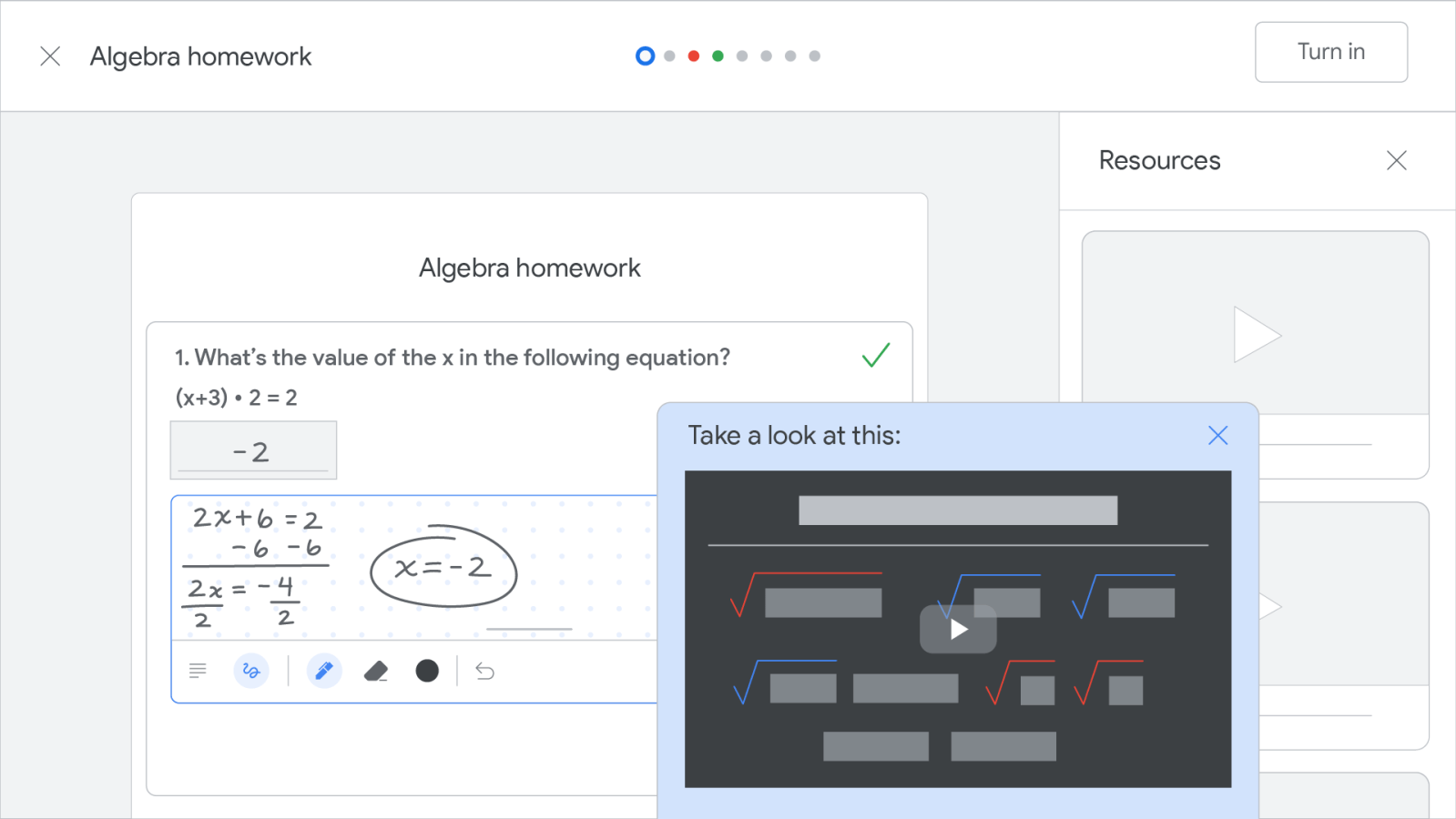 This “in-the-moment help” takes the shape of contextual hints like visual explainers and videos about the concept (in the case of mathematics). Correct answers are awarded with fun animations/confetti, while students are said to enjoy knowing whether they got something right immediately.