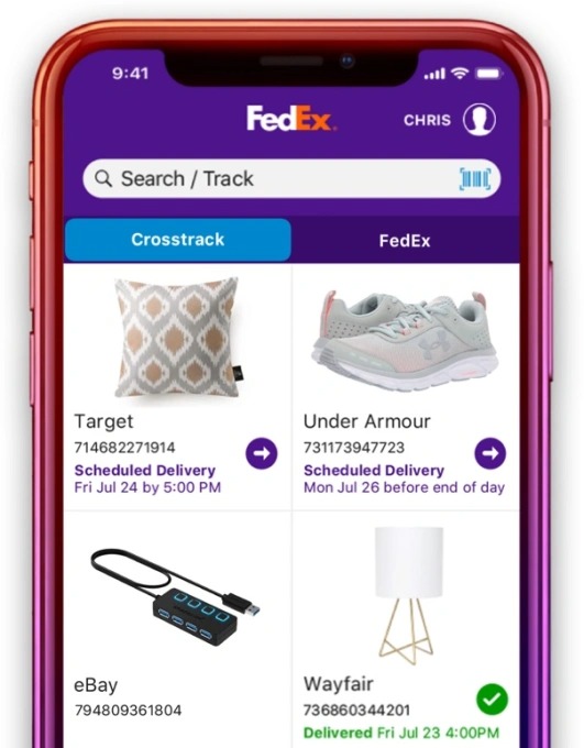 TechCrunch obtained a screenshot from a developer which shows the FedEx app with a new “Crosstrack” section. This new section shows shipments from online retailers such as Target, Under Armor, and Wayfair, as well as a shipment from eBay. It’s not completely clear what this section is for, but it seems there are two possibilities.