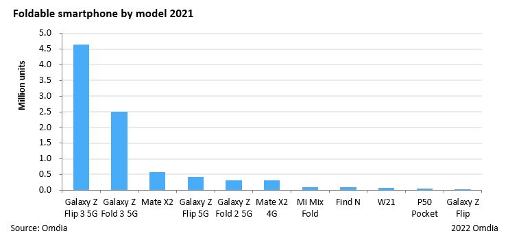 But it does seem there’s one area where Android is making growth in the high-end space. Omdia further reports that foldables had a huge year in 2021, with around nine million units shipped during 2021, up 309% from the year prior.