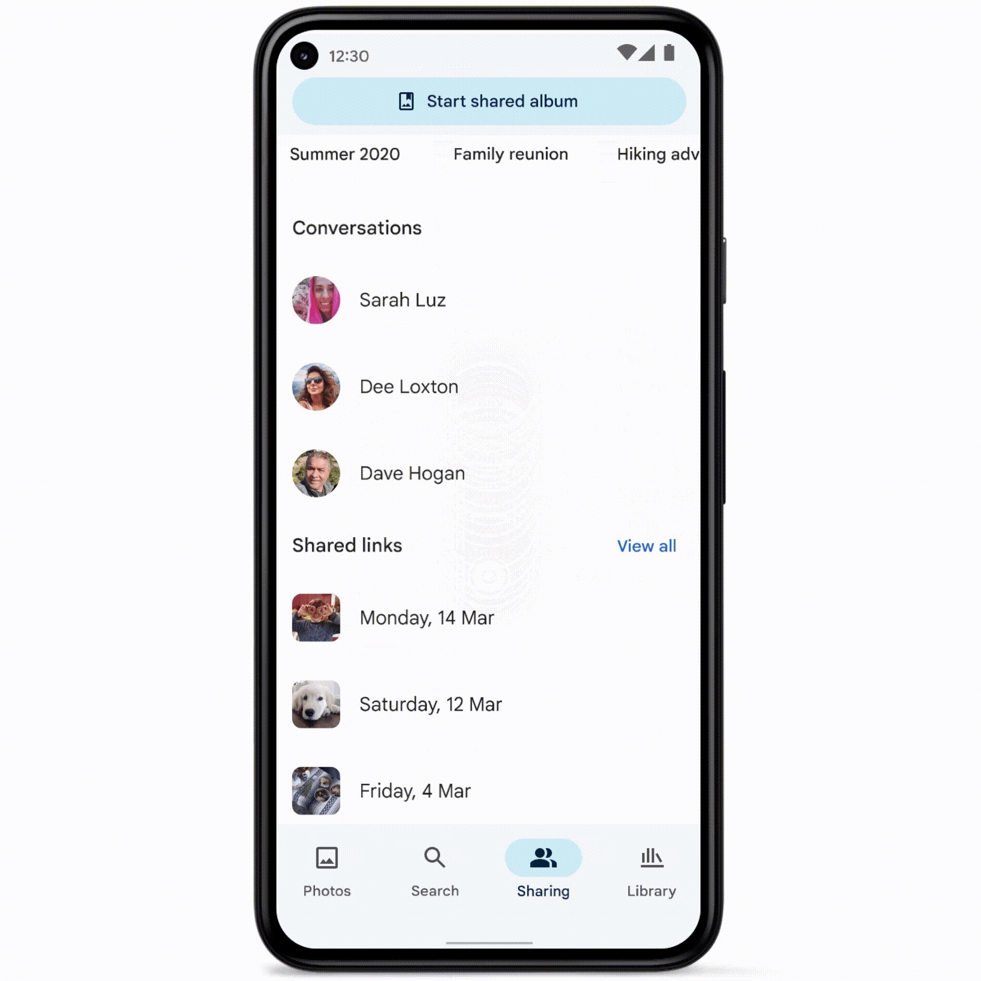 Google has also greatly simplified the Sharing tab in Photos. The boring list that came before is now separated into three distinct sections. There’s a carousel of “Shared albums,” while lists below show your three most recent “Conversations” and “Shared links.”