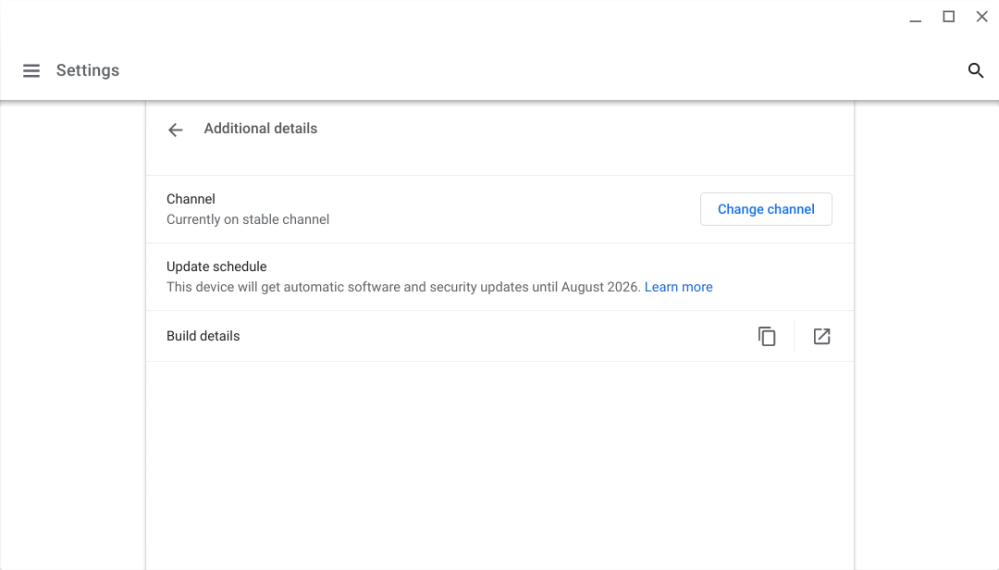 To switch to the Dev channel, open the Settings app, and on the left-hand side of the page, click “About Chrome OS.” On the page that opens, click “Additional details.”