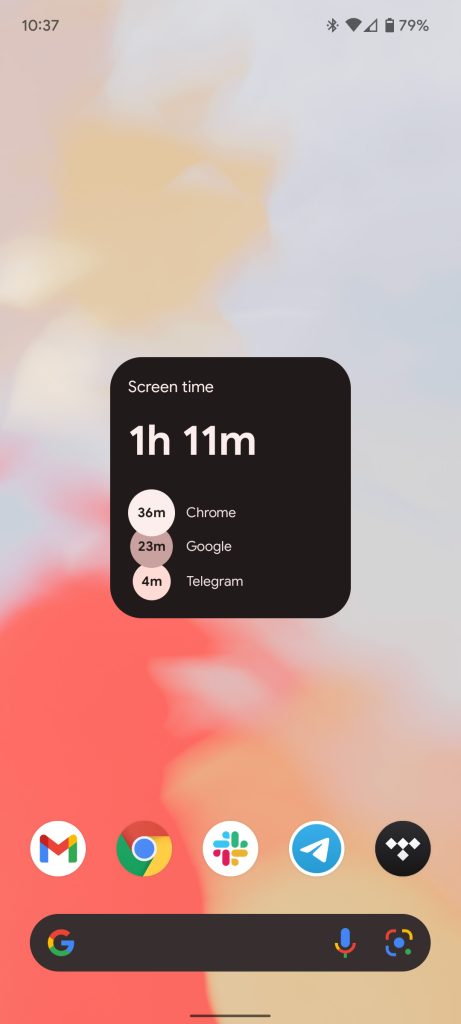 Just like any other widget, the Digital Wellbeing widget displays useful data right on your homescreen. In particular, Google’s Digital Wellbeing service on Android helps you identify where you’re spending the most time during the day.