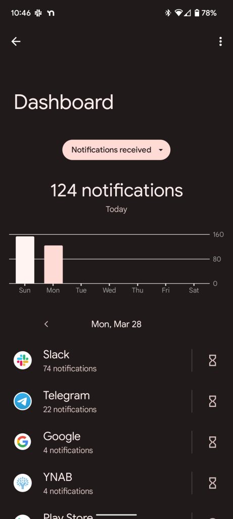 Notifications received will display the “noisiest” apps for that day. Messaging apps will likely always be up there, along with shopping or e-commerce apps, since they rely on marketing notifications.