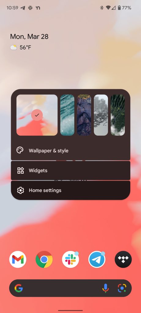 - On your Google Pixel, long-tap any empty section of your homescreen.