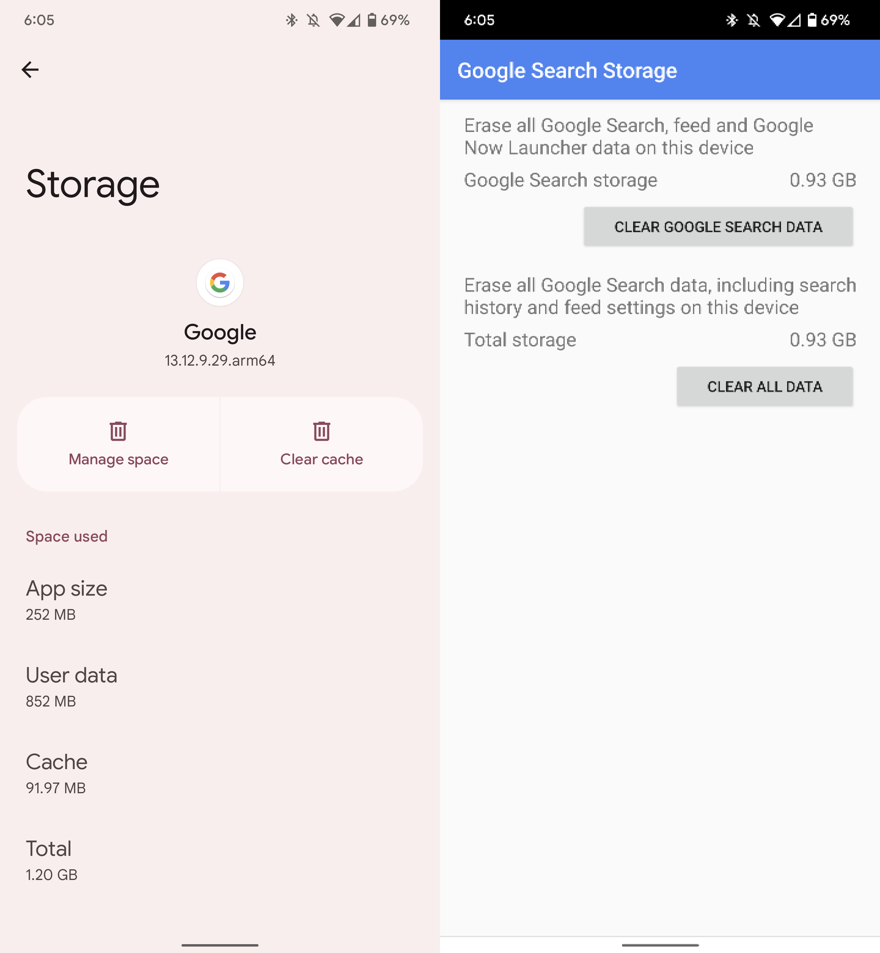 Then, you’ll see where all of the storage used for the Google app is allocated, with “User data” usually taking up the biggest chunk. To continue, tap the “Manage space” option.