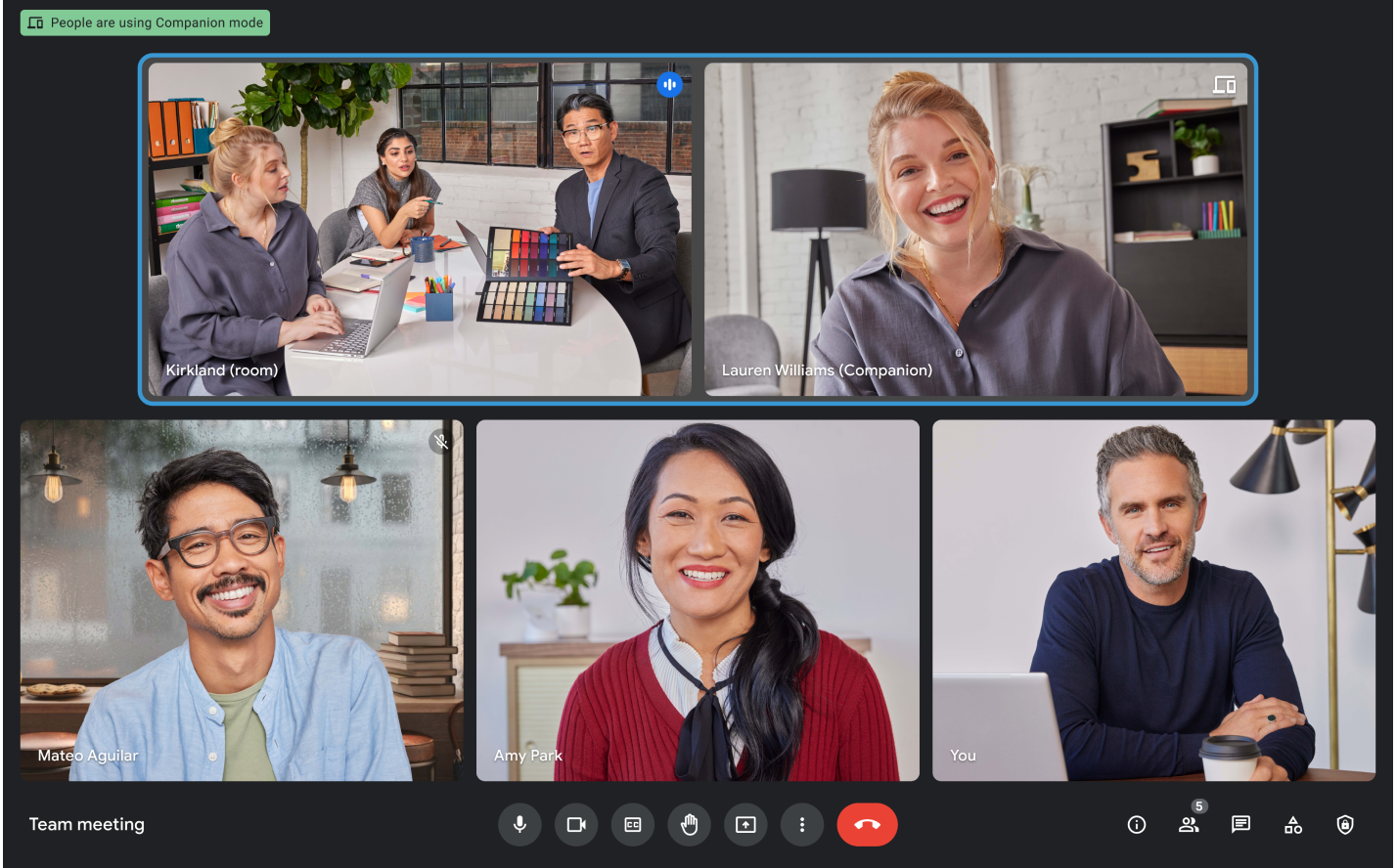 Later this year, second screen Companion Mode will be updated to let people in conference rooms add their individual laptop feeds to let others better see expressions and gestures.