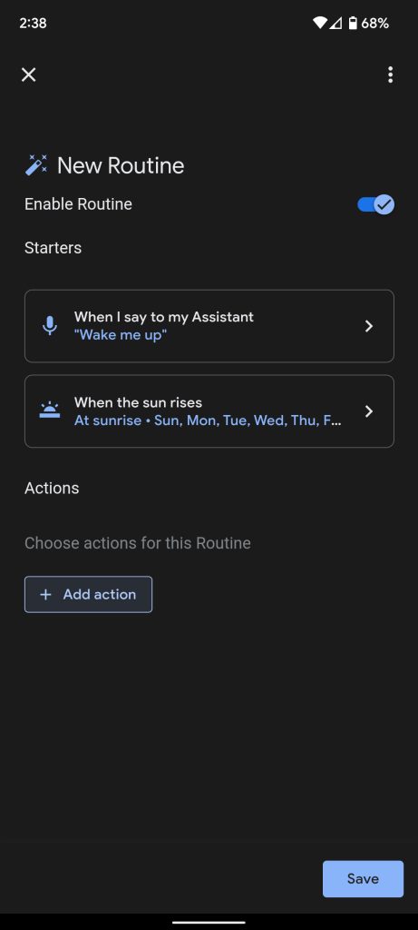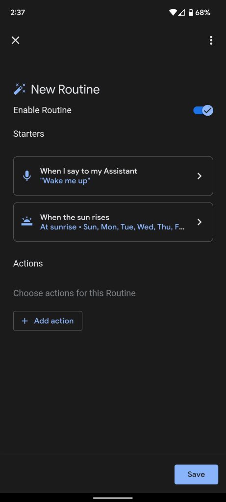 Once you have everything filled out, including a starter, actions, delays, and other specifics depending on the options you chose, you can tap Save to finish the routine. Once you do that, you have a new Assistant Routine set up with delayed actions. Though it takes a little bit of effort, it pays off in the end.