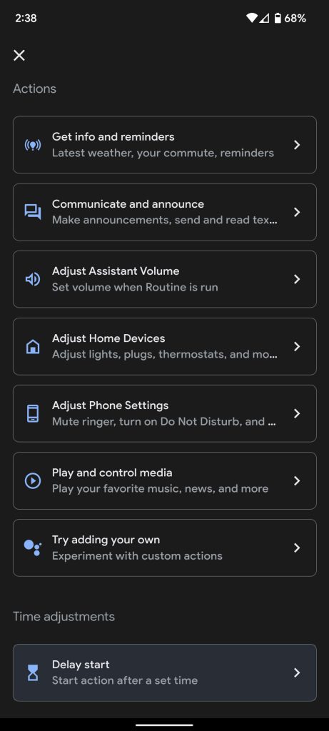 One feature that’s started making its way to users is something called delayed actions in Google Home’s Assistant Routines. In any given Assistant Routine, there is at least one action. If you have multiple actions, you can set up a delay so that the second action, and so on, can be delayed form the first.