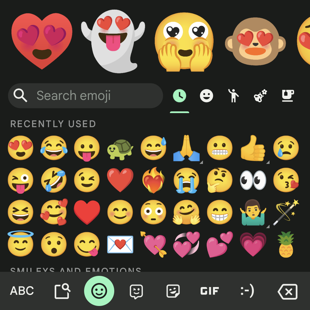 Gboard’s Emoji Kitchen is simple. Artists have developed over 15,000 different combinations of emojis that will appear when you select at least one of the two needed. For instance, if you try to send Face with Tears of Joy (😂) to a friend, Gboard might suggest that you combine it with Smiling Face Heart-Eyes (😍) to make a new emoji with tears of joy leaking from its heart-eyes. You can either take the suggestion or select a different emoji and see if you get something even crazier.