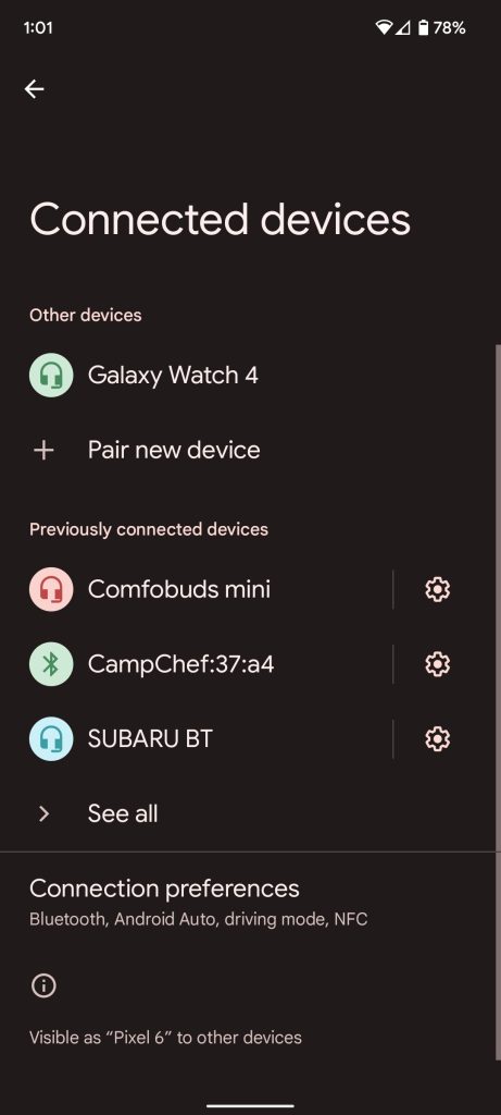 - Note: Connected devices will show up on the top of that page, while inactive devices will appear under Previously connected devices. You can edit both.
