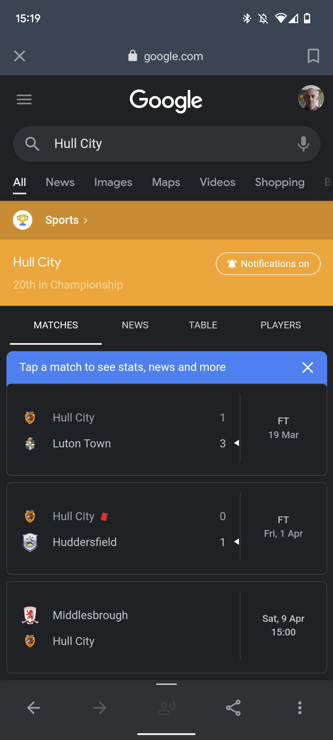 Similar to the weather shortcut, this new button opens into the browser with a new Google Search for the team’s name. This offers easy access to the latest news, scores, and info about upcoming games.