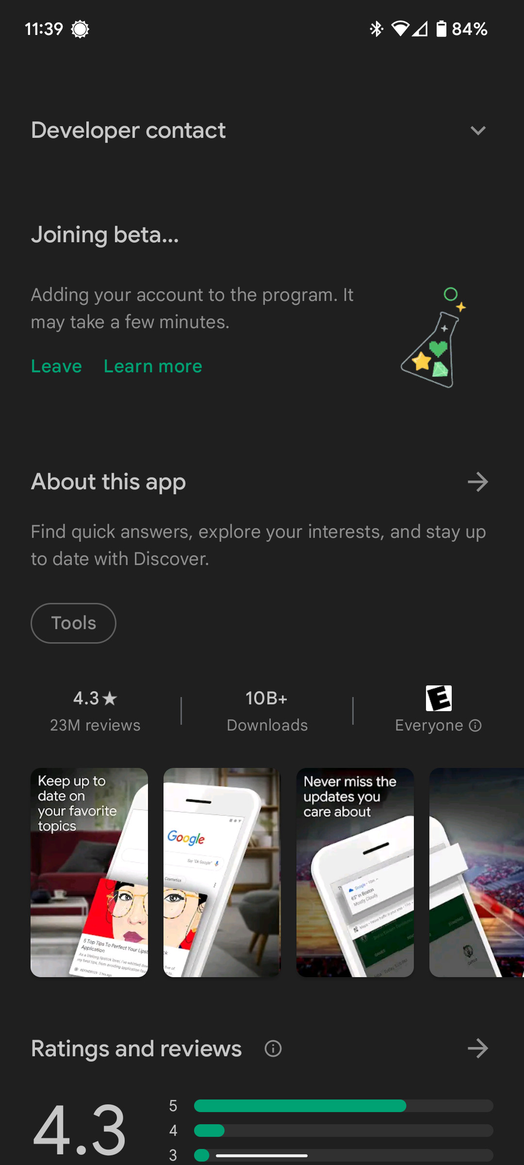 - Once you’re on the app page, scroll down to the beta section. Tap Leave.