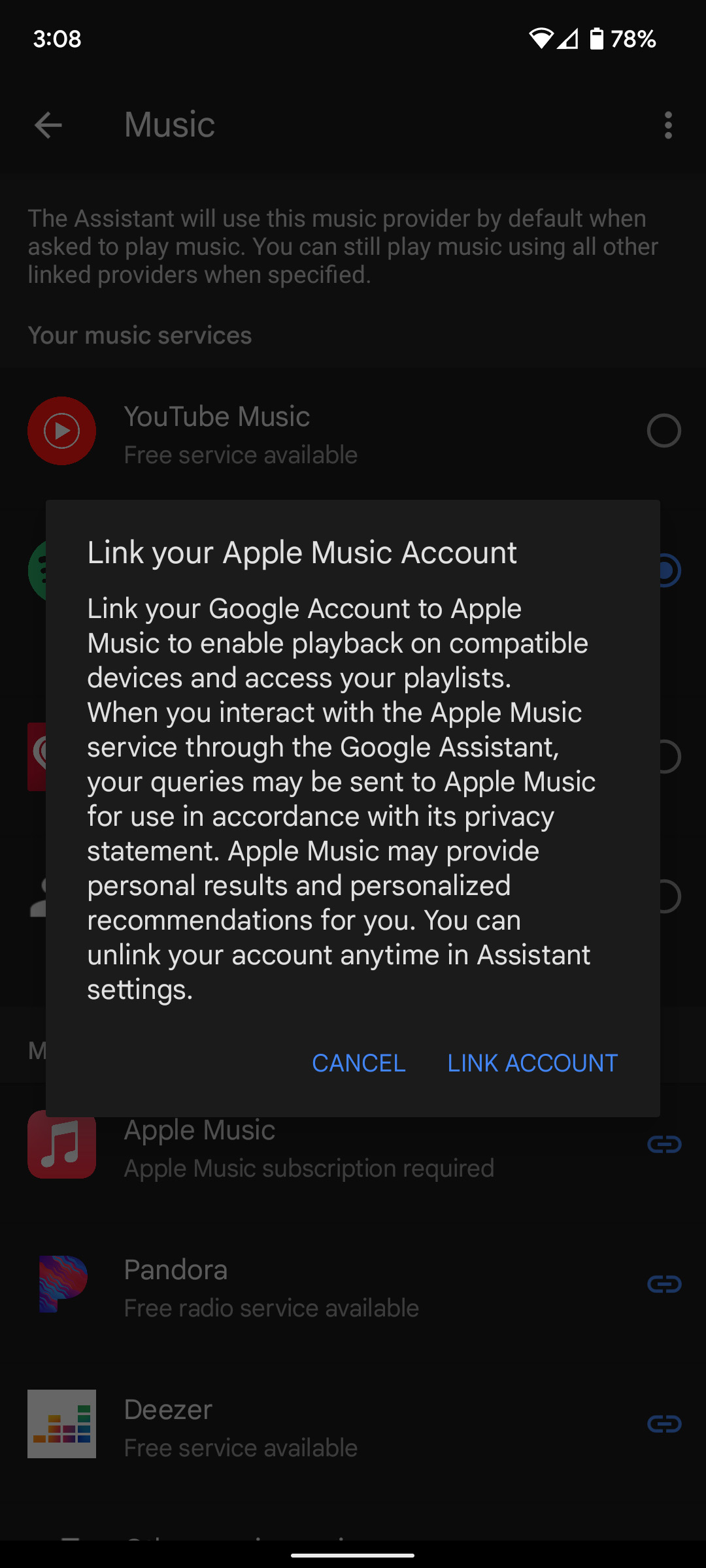 After following this process successfully, Google Home will finish linking your Apple Music account and automatically set it as the default music provider when asking Google to play music on your speakers.