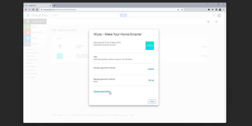 Using Google Play billing makes it a little easier to track your active subscriptions and see where your money is going. When viewing these subscriptions, you get information about the cost per period you’re paying as well as what type of plan you’re on. You can also see which card or account you’re paying with and can create a backup method.
