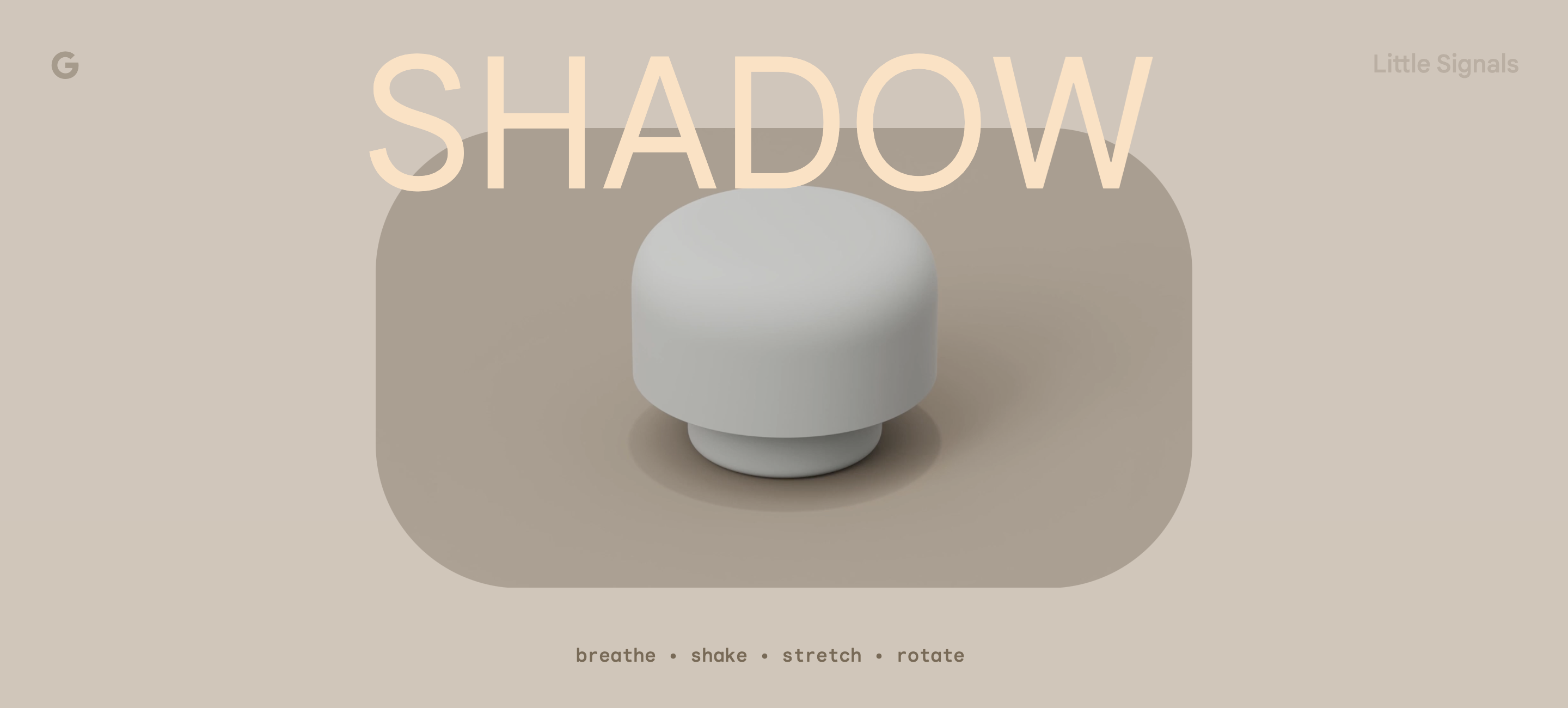 - Shadow communicates through the movements of the shadow it casts. They show the object’s status, like gently breathing when active or stretching in response to presence.