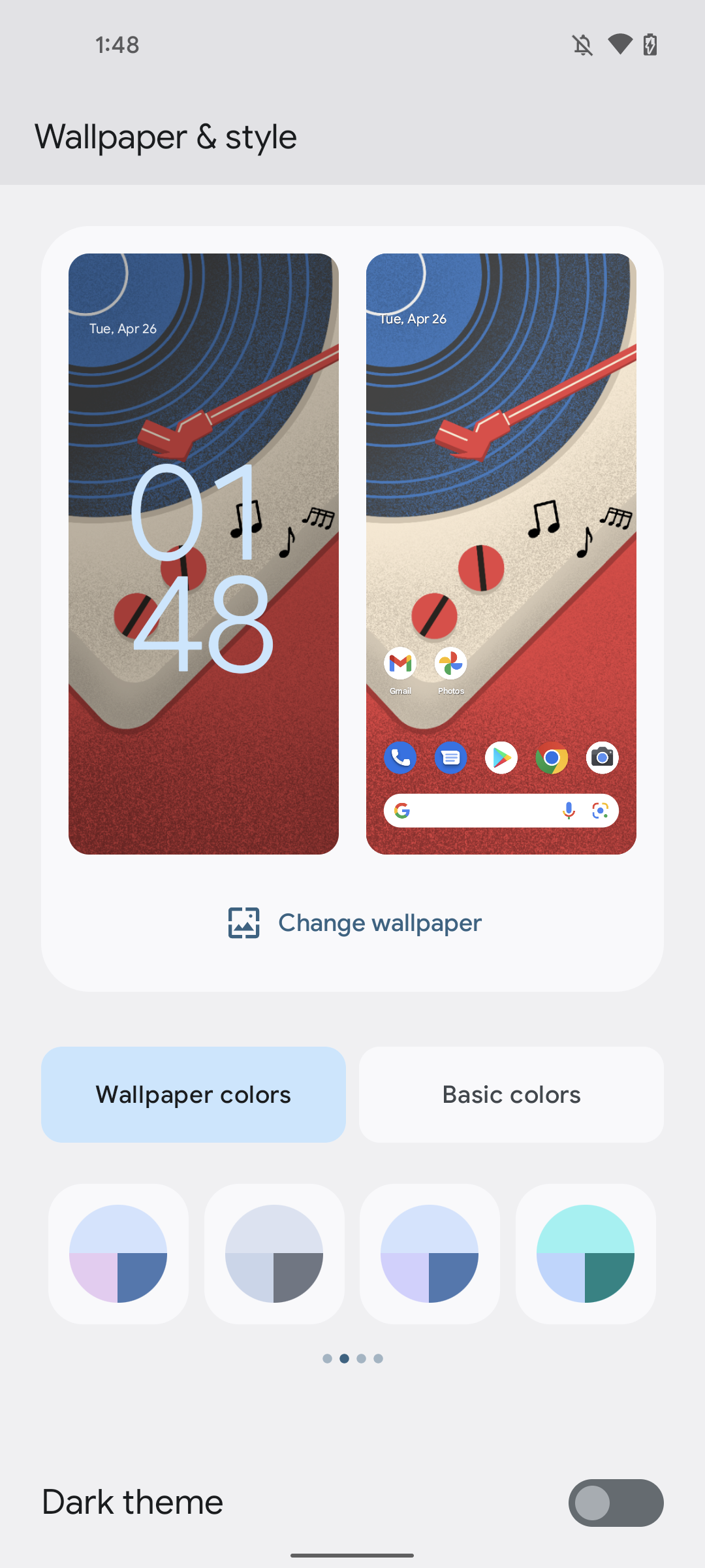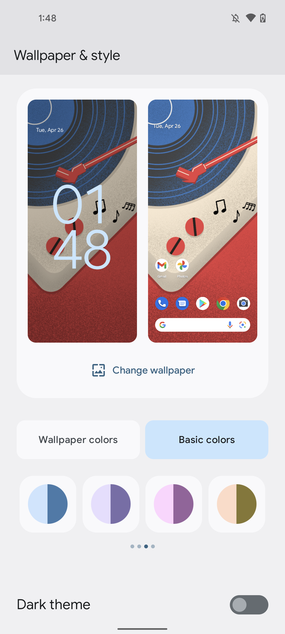 From what we can piece together, you’re given a range of choices based on a particular set of colors in your wallpaper. For each set of colors, you get to choose among four different Material You color theme styles, though the fun names of those styles (Spritz, Fruit Salad, etc.) are not shown in the settings today.
