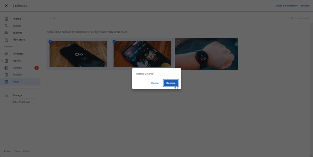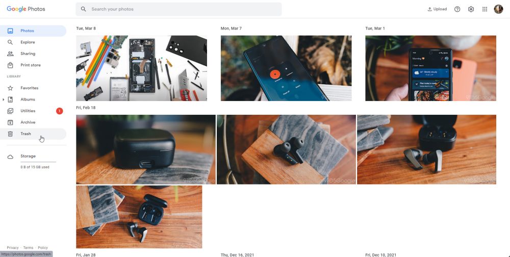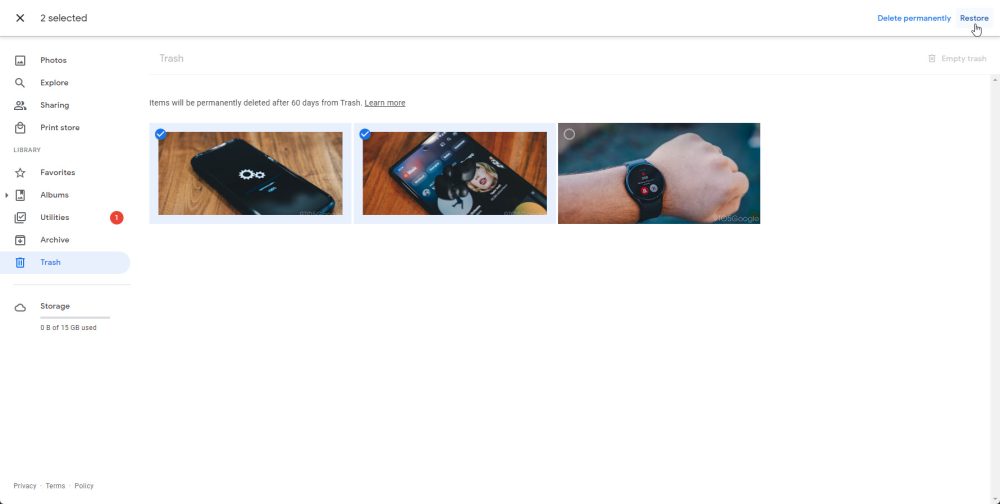 As mentioned, restoring images that have been previously trashed in Google Photos is pretty simple. As long as you’re within the time frame mentioned above, those images should be waiting for you in the Trash section. Here’s how to recover them: