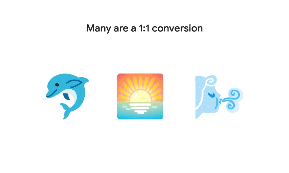 Many resulted in 1:1 conversions, but there were several design challenges associated with simplification that prevented Google from just redrawing emoji in black-and-white, especially flags: