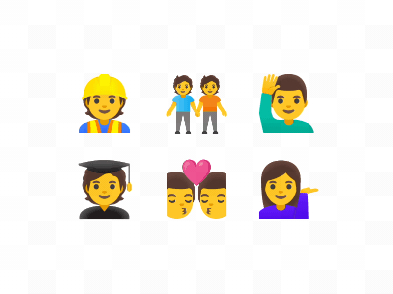 Relatable without maintaining a distinction between genders. Google’s blob emoji were really something special. Cute, squishy, and remarkably friendly. We were able to bring back a little bit of what made them special while simultaneously discarding the parts that weren’t working. Most notably, the blobs’ facial expressions were wildly inconsistent but that was very easily fixed in black and white mode.