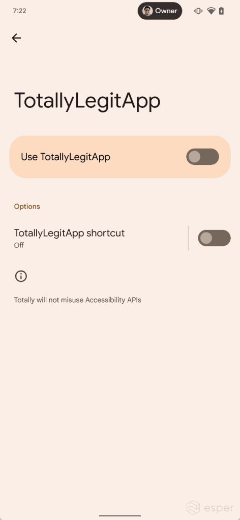 Spotted by Esper this week, Android 13 has a safeguard in place to block sideloaded apps from using the platform’s Accessibility API. As pictured below, apps sideloaded in Android 13 will be presented with a message saying that accessibility settings are “unavailable” for the app in question.