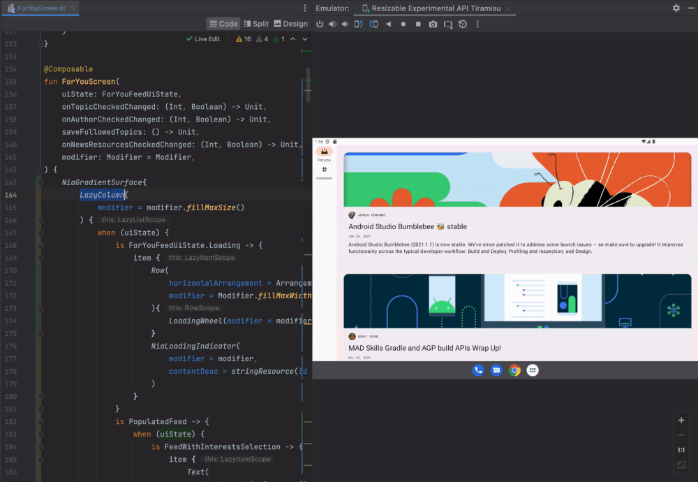 Other improvements with Jetpack Compose 1.2 include a new customizable “LazyLayout,” stable lazy grid layouts, WindowInsets to better add Compose to an existing app, and recommended “window size” layouts for testing.