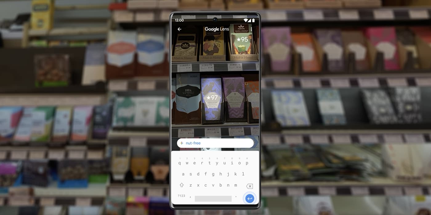 The use case Google details for this is shopping for a specific chocolate bar within a store. On the shelf, there might be dozens of options, which Lens can recognize and help you filter. As seen in the demo below, “scene exploration” is able to recognize each individual chocolate bar and show its online review ratings. From there, Google Lens can help you filter options based on the highest ratings or type of chocolate, and even look for a “nut-free” option.