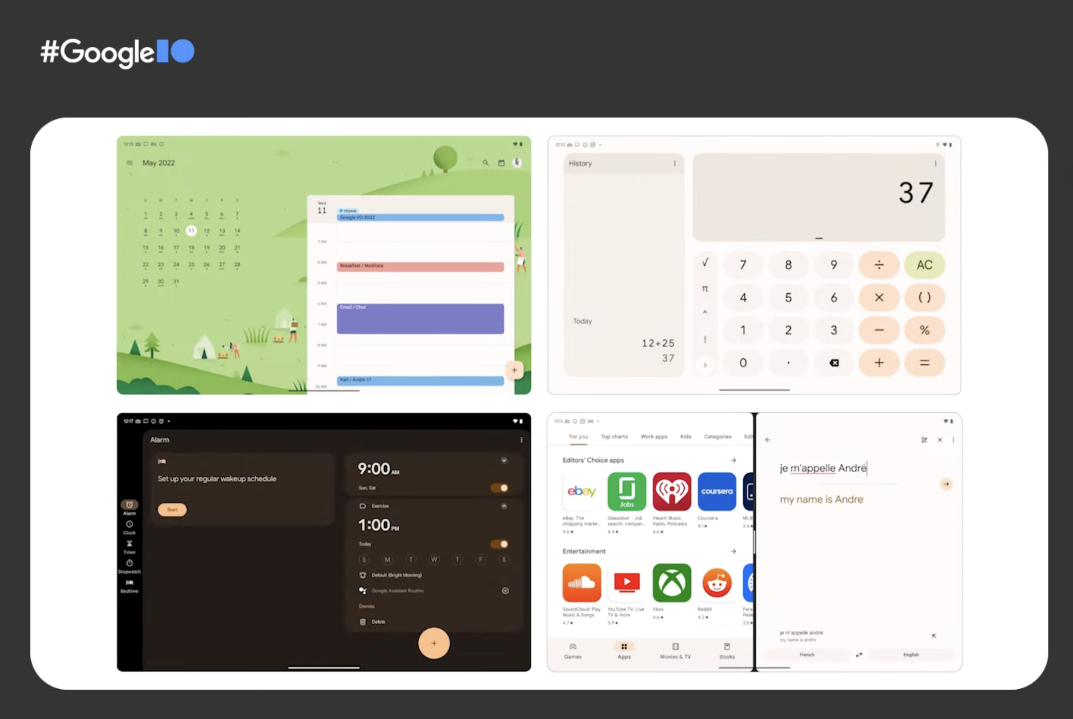 On stage at I/O 2022, Google announced that over 20 of its first-party apps will soon be optimized for large screens. Some were already previewed yesterday, and there’s now a look at how Google Clock and Calculator are being updated for their Android tablet redesigns.
