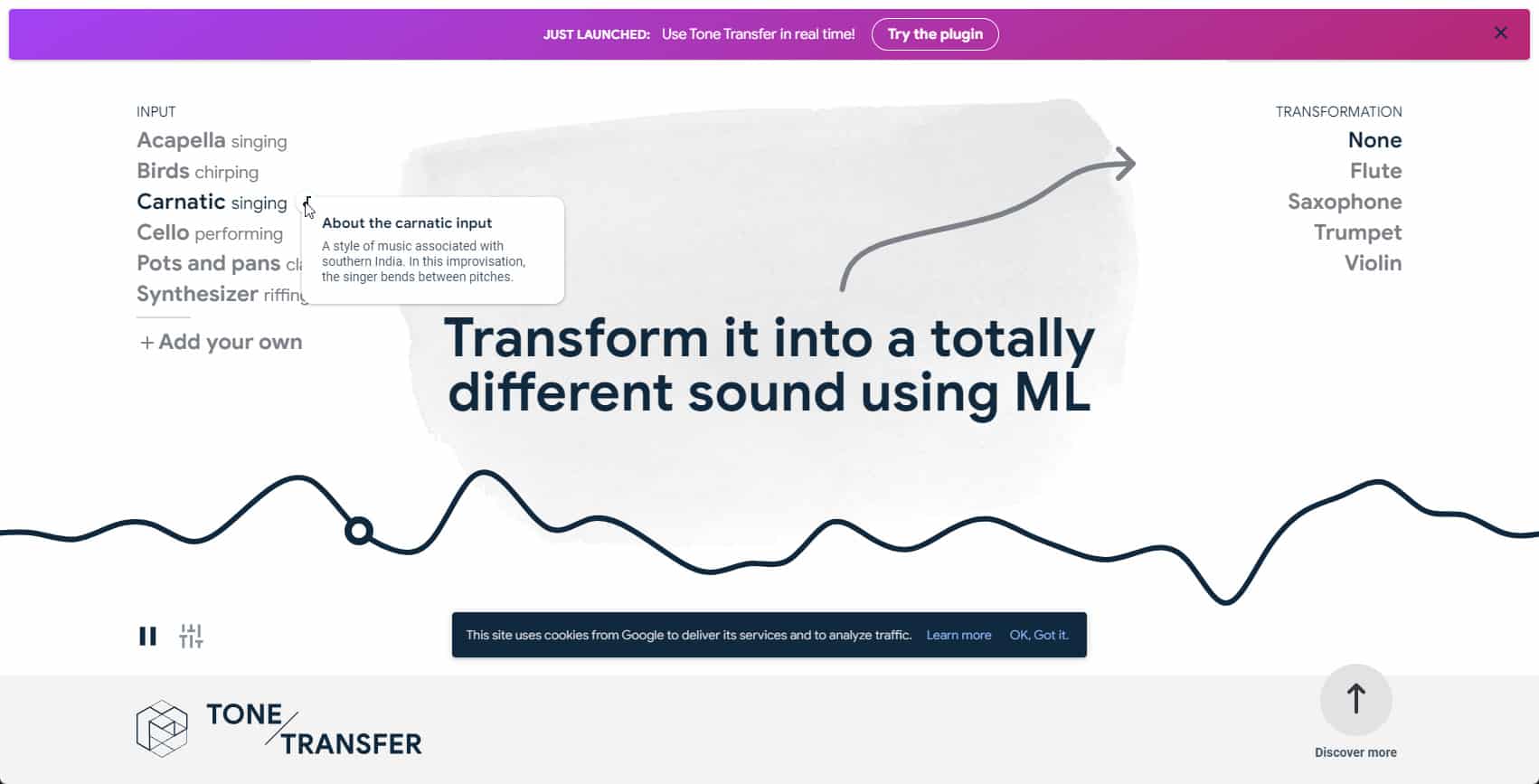 Developed by the Magenta team from Google and announced back in October 2020, Tone Transfer is a pretty neat tool that allows artists to input sounds and get something completely different out of it. For instance, you can take the sound of people singing, birds chirping, or even the dull and sharp bangs of pots and pans, and turn that sound into a flute or violin.