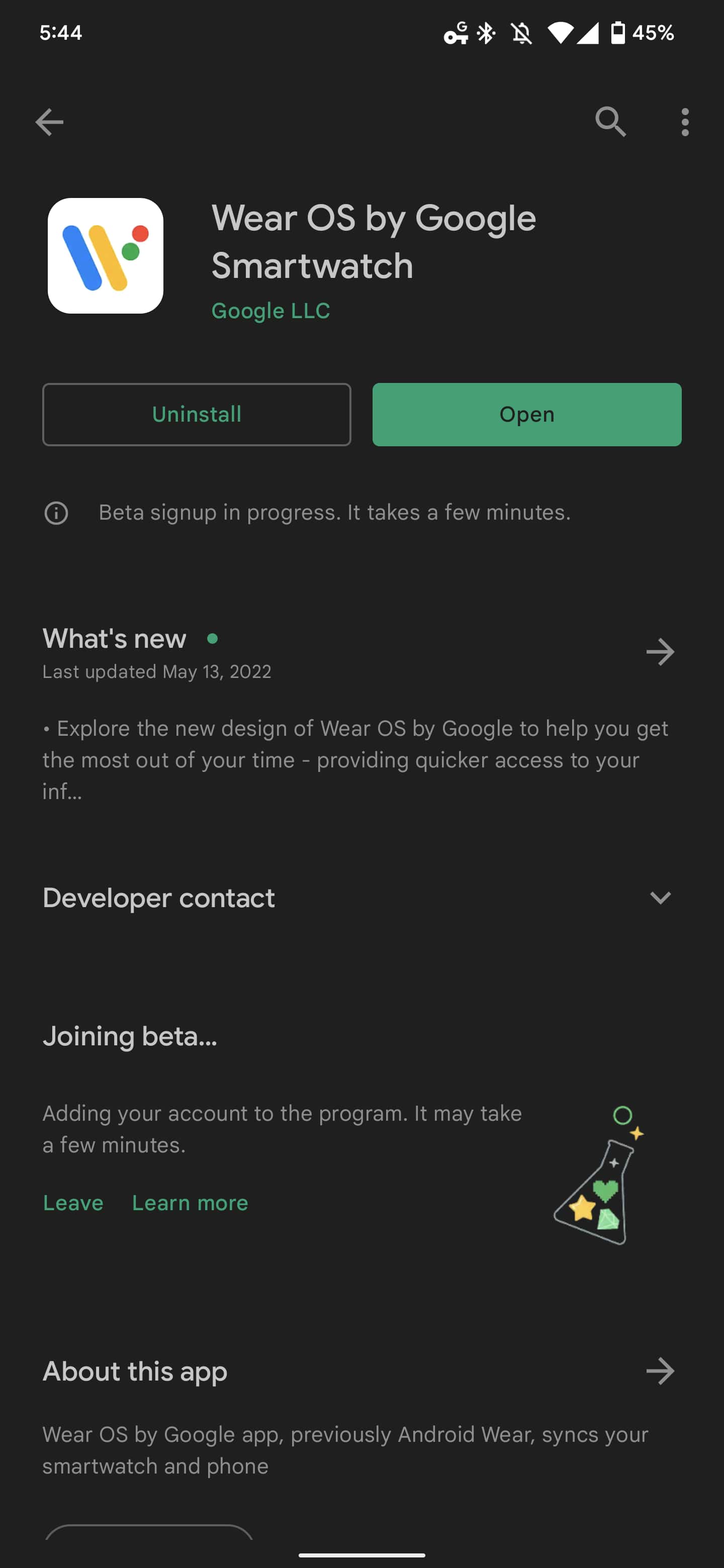 Last week, a handful of Google apps opened preview programs, but new versions have yet to emerge. The Play Store now says that the Wear OS companion app is getting a beta.