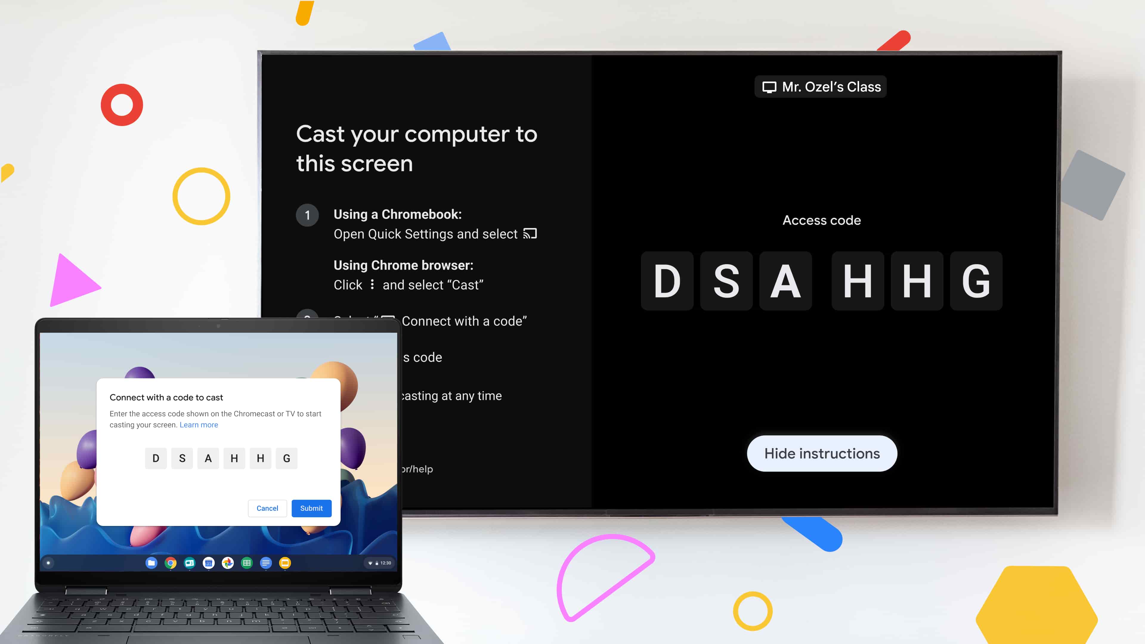 The other big upgrade is “Cast moderator” for “secure, wireless casting” specifically aimed at classroom usage. Teachers and students can share the screen of their Chromebook or desktop Chrome browser to a supported Google TV device, which will display a six-digit secure access code to prevent disruptive or unintended screen sharing.