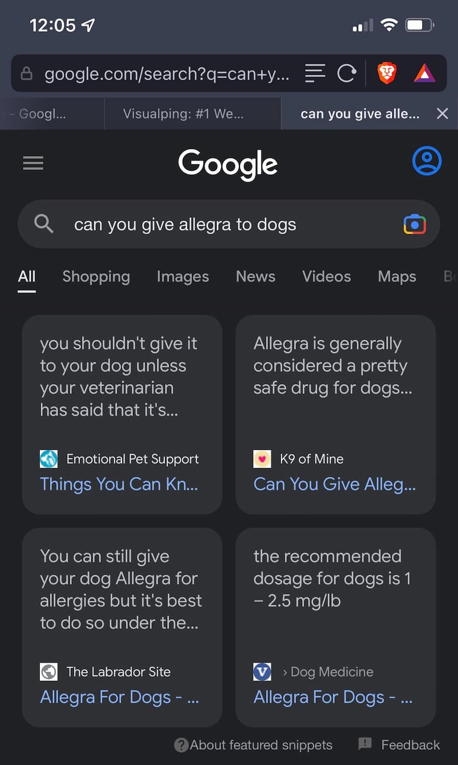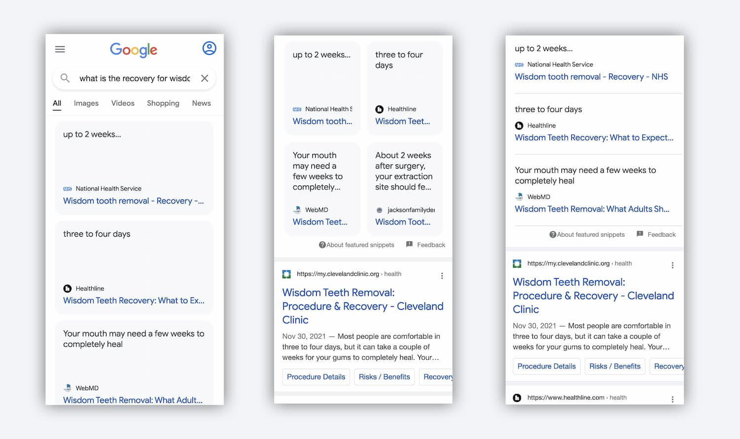 Brodie Clark on Twitter saw and documented the new design when searching “what is the recovery for wisdom teeth removal” while William Álvarez saw it when searching “can you give allegra to dogs.”