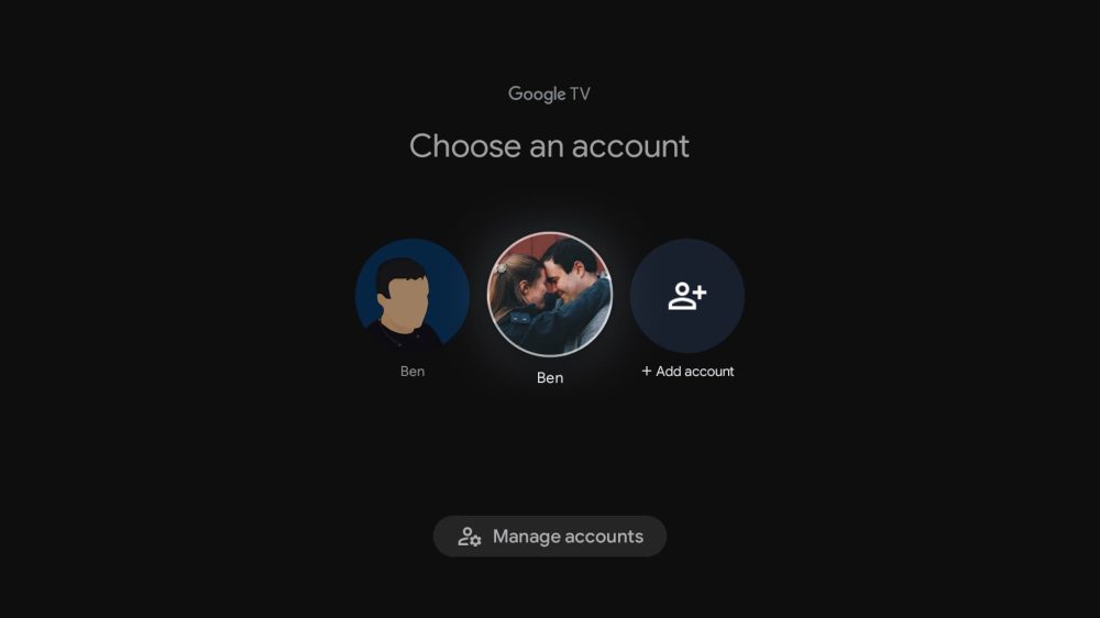 After you’ve set up a new account on Google TV, you can switch between users by clicking on your profile picture on the homescreen, and hitting “switch account.”