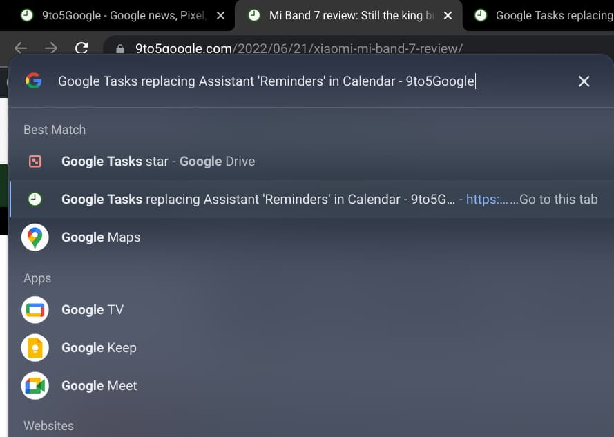 If enabled (chrome://flags/#productivity-launcher) on your device — not yet widely rolled out, the redesigned Launcher can now find and navigate to open tabs.