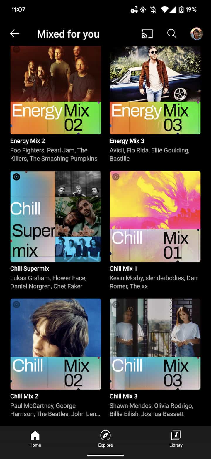 Personalized playlists based on listening history are a big part of YouTube Music, and the app is now giving users a quick way to view every “Mixed for you” creation available to them through a grid view.