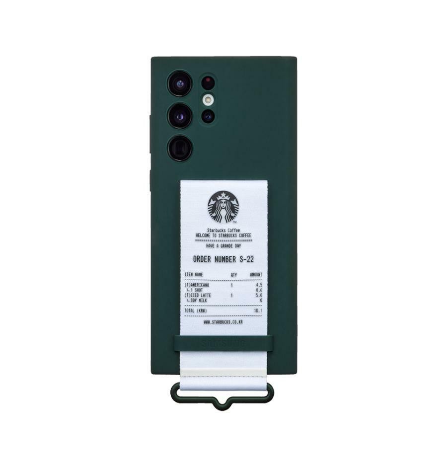 A fun case for the Galaxy S22 Ultra has a strap on the back that looks like a Starbucks receipt, too.