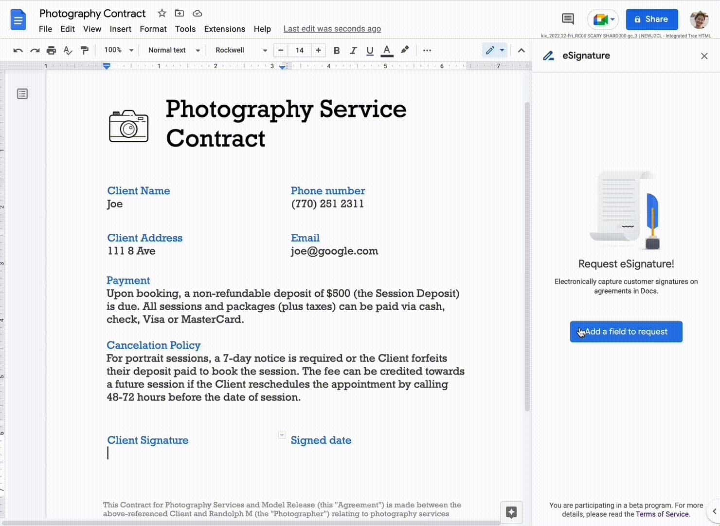 Google says Docs eSignature support is “coming soon in Beta to Google Workspace Individual users.” That tier is currently discounted to $7.99 per month (from $9.99) until October 2022. Other third-party services also integrate with Docs to offer electronic signature signing, and Google says they’ll keep working.