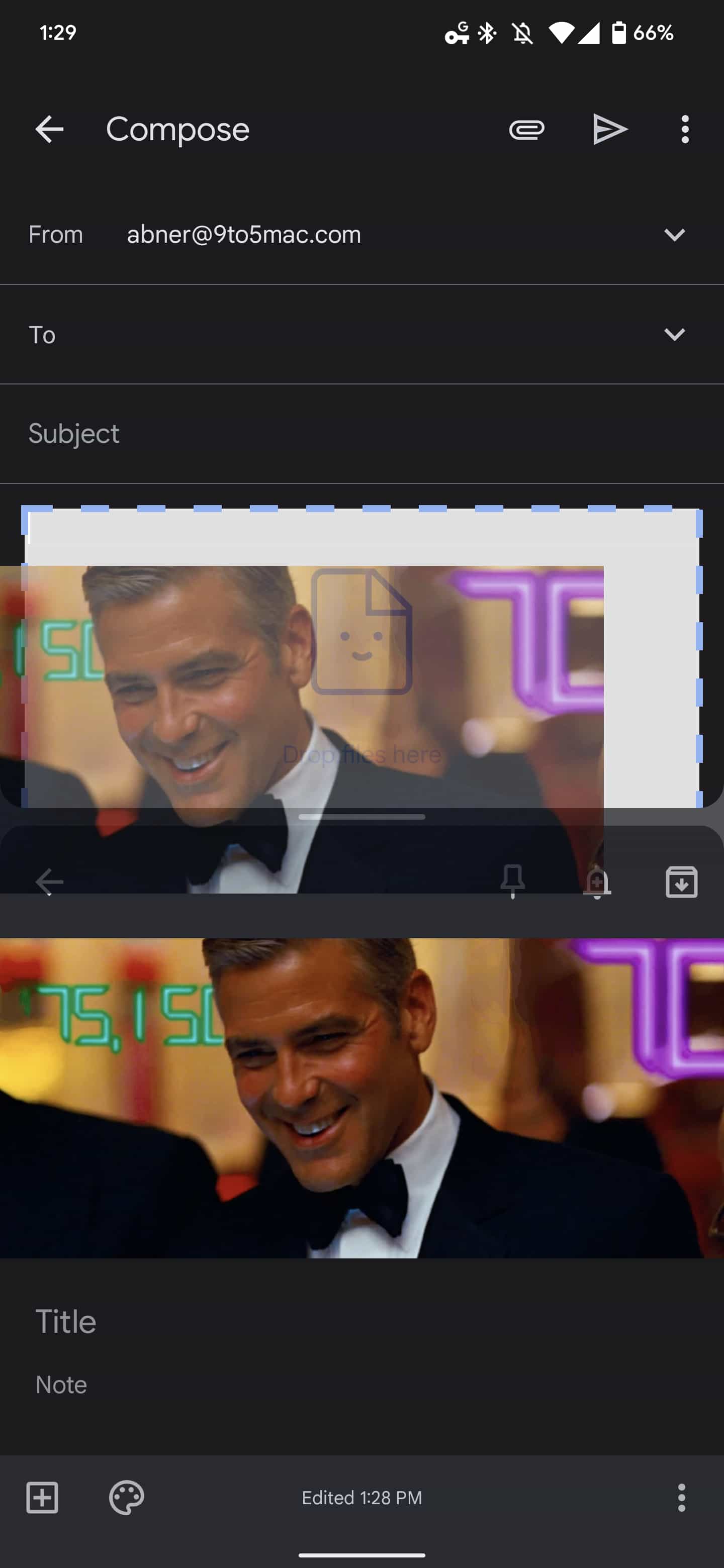 To start, have Google Keep and another app, like Gmail, open side-by-side in split screen mode. If your note has an image, long-press on it for a second until it pops-out and then bring it over to the other application.