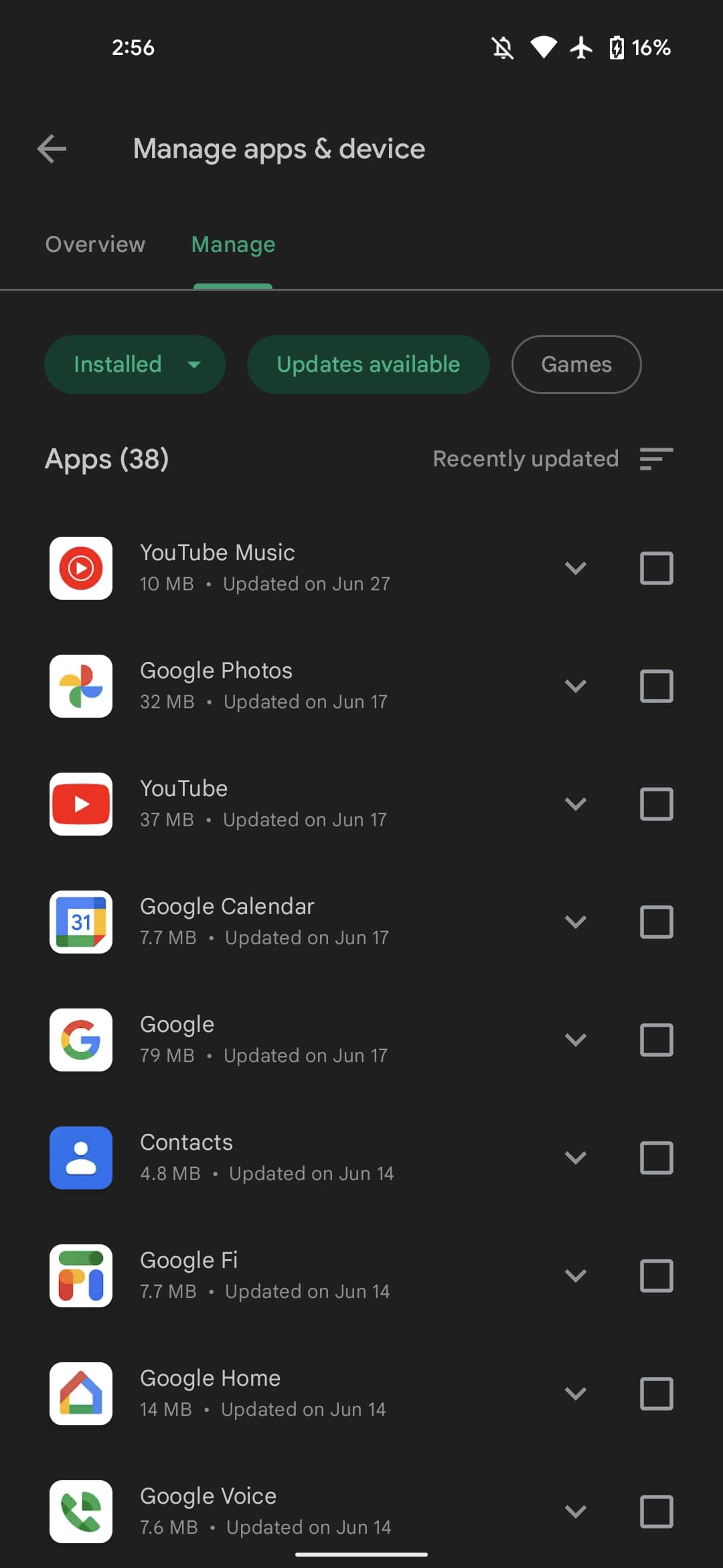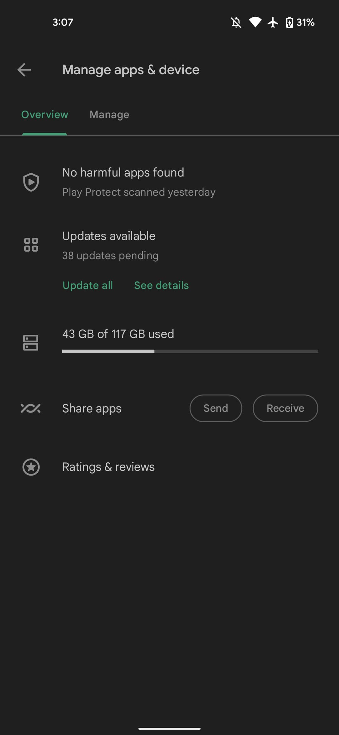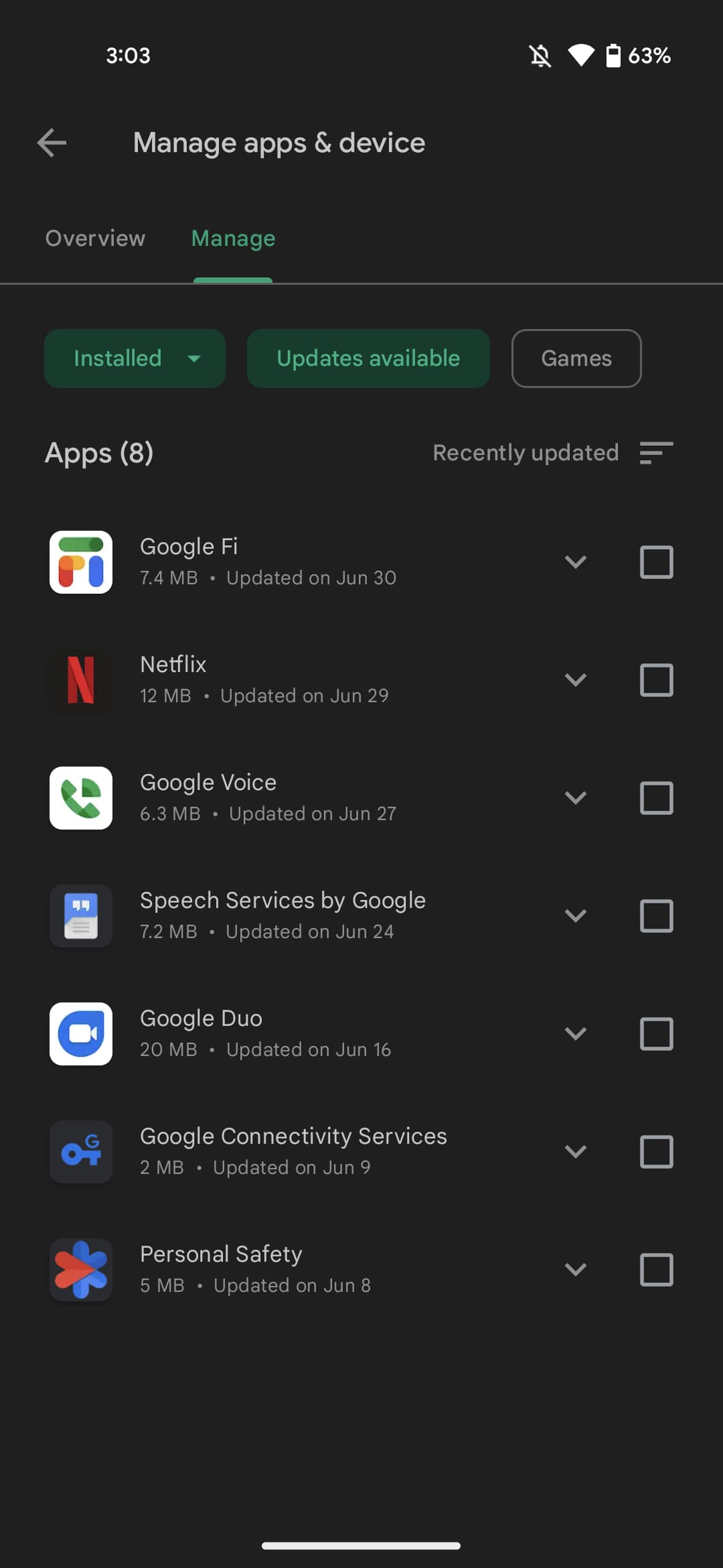 On app listings, these changes apply to the “Install,” “Uninstall,” and “Update” buttons, while category chips/filters go in the opposite design direction. It’s the right trade-off as buttons see more use and generally are more prominent. The changes are also visible on the Manage apps & device page and search results.
