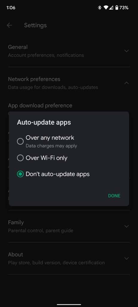 If you want to have complete control over what updates come out and are applied to your apps, choose Don’t auto-update apps. After selecting this, you’ll have to head into the Google Play Store and manually select the apps you want to update.
