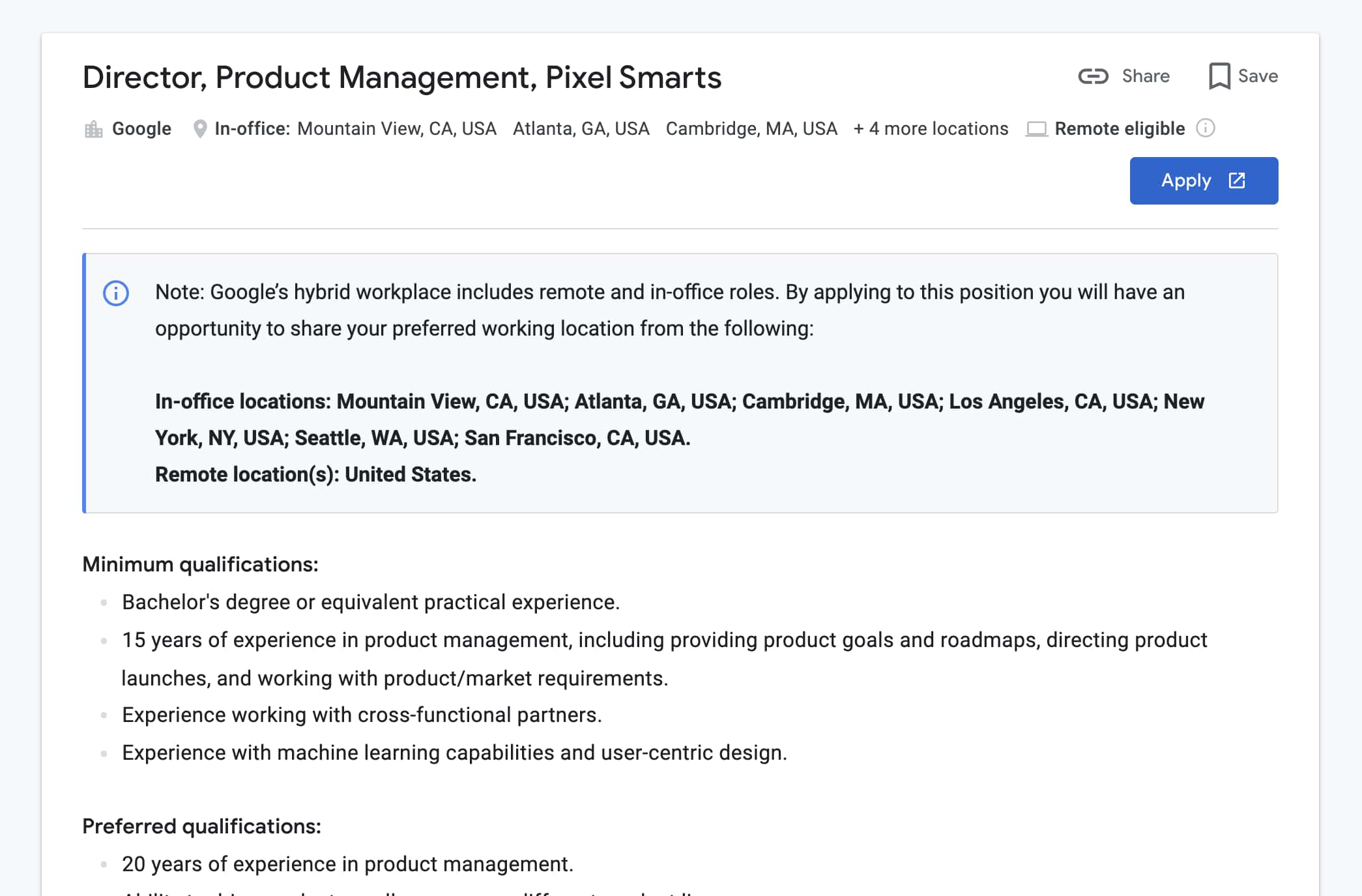 As the Director of Product Management for Pixel Smarts, you will focus on creating differentiated experiences on Pixel that leverage our machine learning expertise. This will require a deep, innovative exploration of user needs and technological capabilities. In addition, you will contribute to and lead this exploration, build a product roadmap, and help to build a Product team.