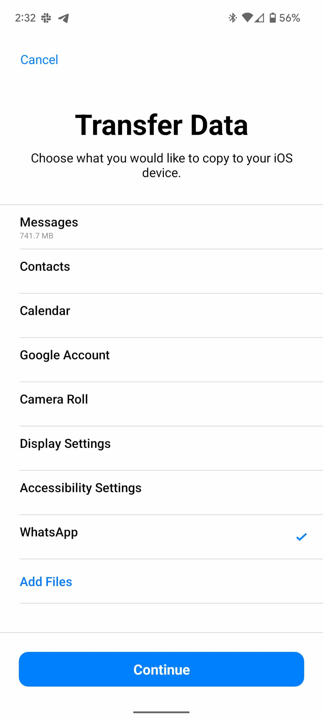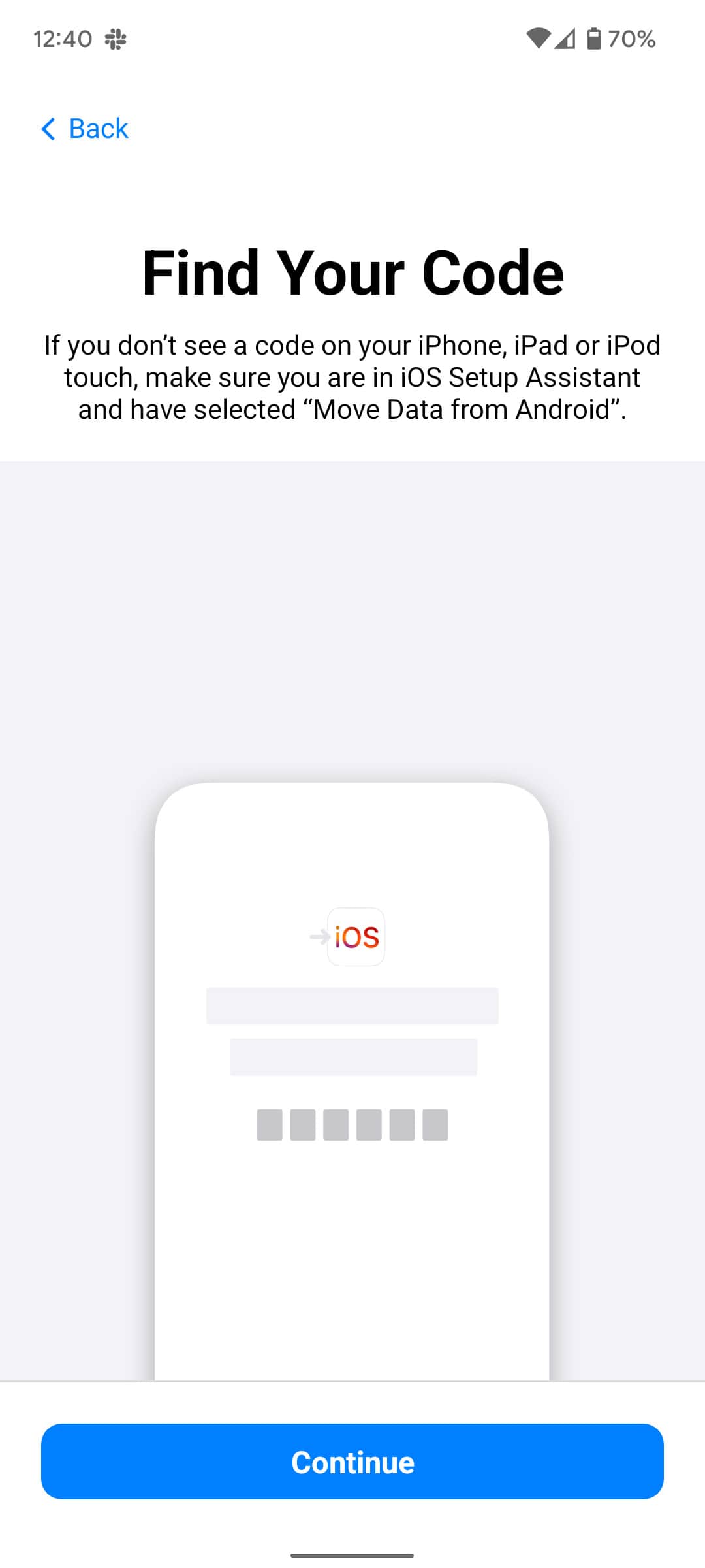 - You’ll be pulled back into the Move to iOS app. Hit Continue.